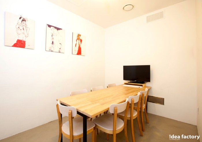미팅룸(5-8인) : 시간 당 20,000원(인원수 상관 없음) , 47"LCD 모니터, 화이트 보드 제공
