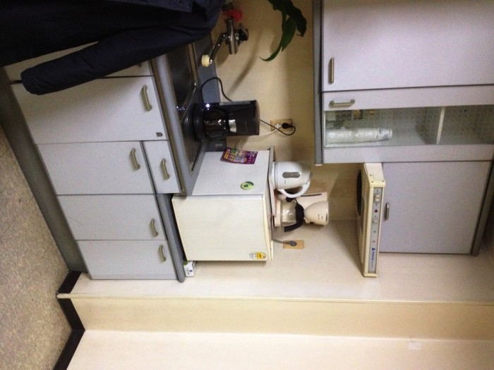 책상 4개, 쇼파, 복합기(복사, 프린터, 스캔), 전화, 팩스, 소형냉장고 등이 있습니다.