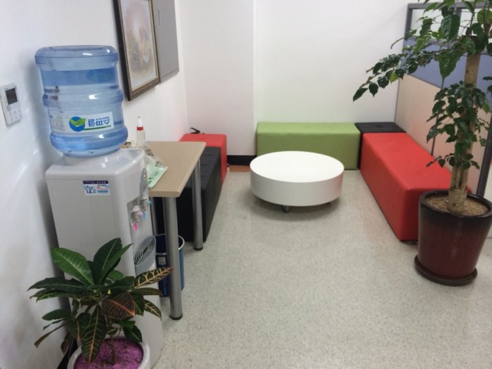 냉장고, 복합기, 시스템에어컨, 회의실 있습니다.