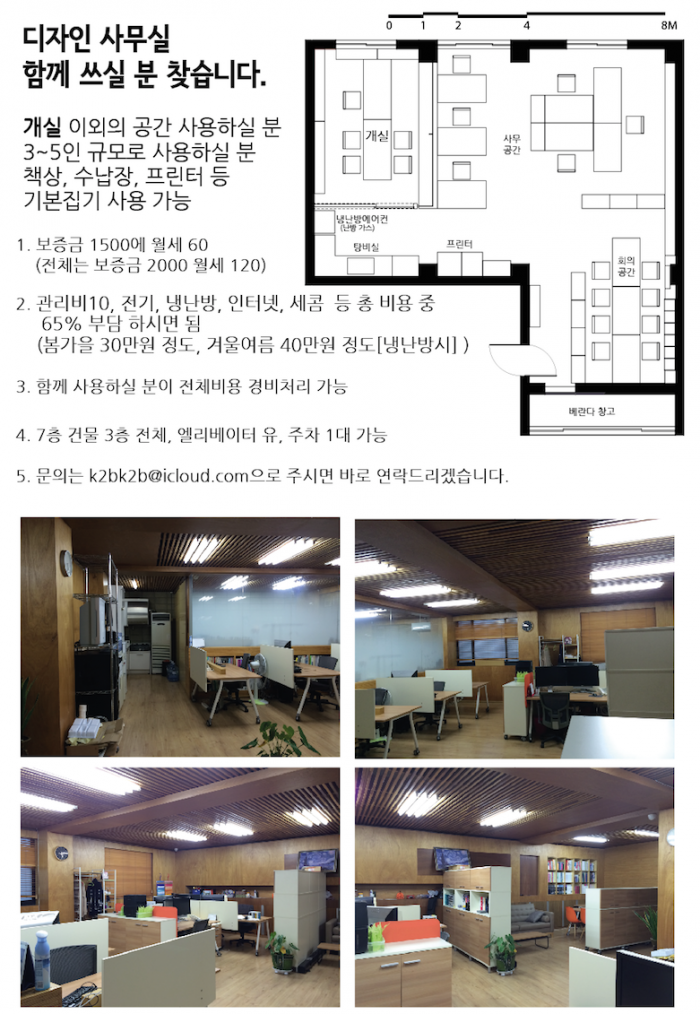 [성내동] 강동역, 둔촌동역 디자인사무실 함께 쓰실 분이나 소규모 사업체를 찾습니다.
