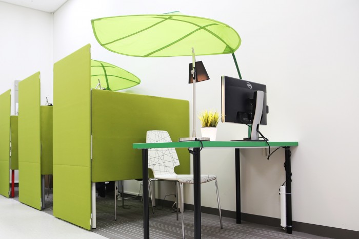 6. 사무공간을 나뭇잎 캐노피로 덮어 딱딱하지 않은 아늑한 느낌을 가질 수 있습니다.