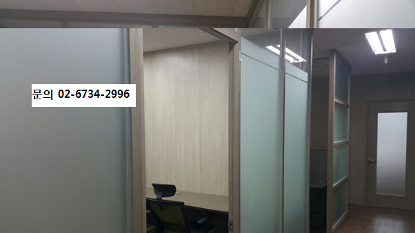 구로소호사무실 114 는 보시는 사진과 같이 접하는 벽면을 모두 유리로 제작하여 일단 답답함을 해소하였습니다.