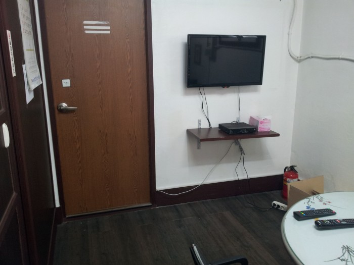 주 사무실에 파티션이 쳐진 책상이 총 4개가 있고 옆에 조그만 휴계실겸 회의실도 있습니다.TV도 구비했습니다.