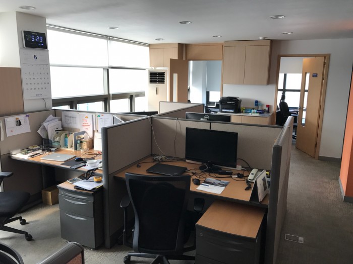 회사 사정으로 기존에 7명 근무하시던 자리에 2명만 있게 되어 공간이 많이 남습니다.