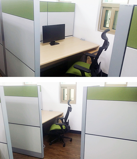 -퍼시스 책상, 파티션:1600 넓이 책상과 1600높이 파티션으로 되어 있어 왠만한 작업 무리없이 가능하구요. 주위 방해 없이 집중하시기에 좋아요~