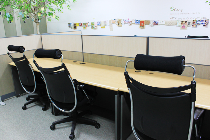 1) 룸 : 5m x 4m(약6평) / 홀 : 개인용 책상(가로:1,400mm) 및 의자 제공(파티션요청시 쳐드립니다.)