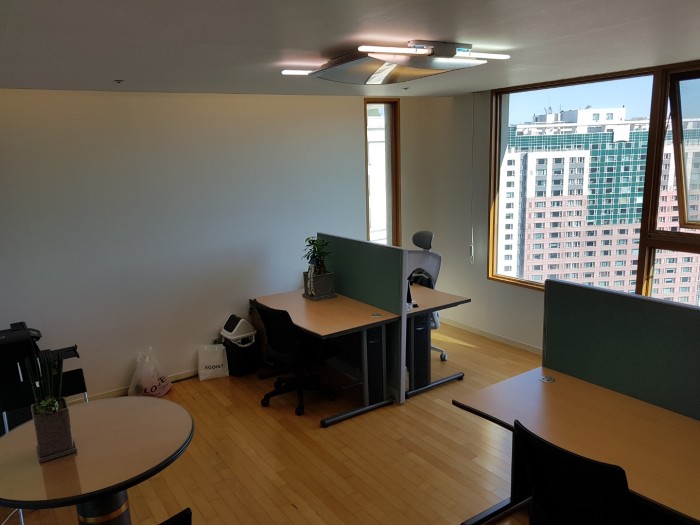 사무실- 책상 4개가 놓여져 있구요.. 넷이서 사용하기엔 넉넉한 것 같습니다.