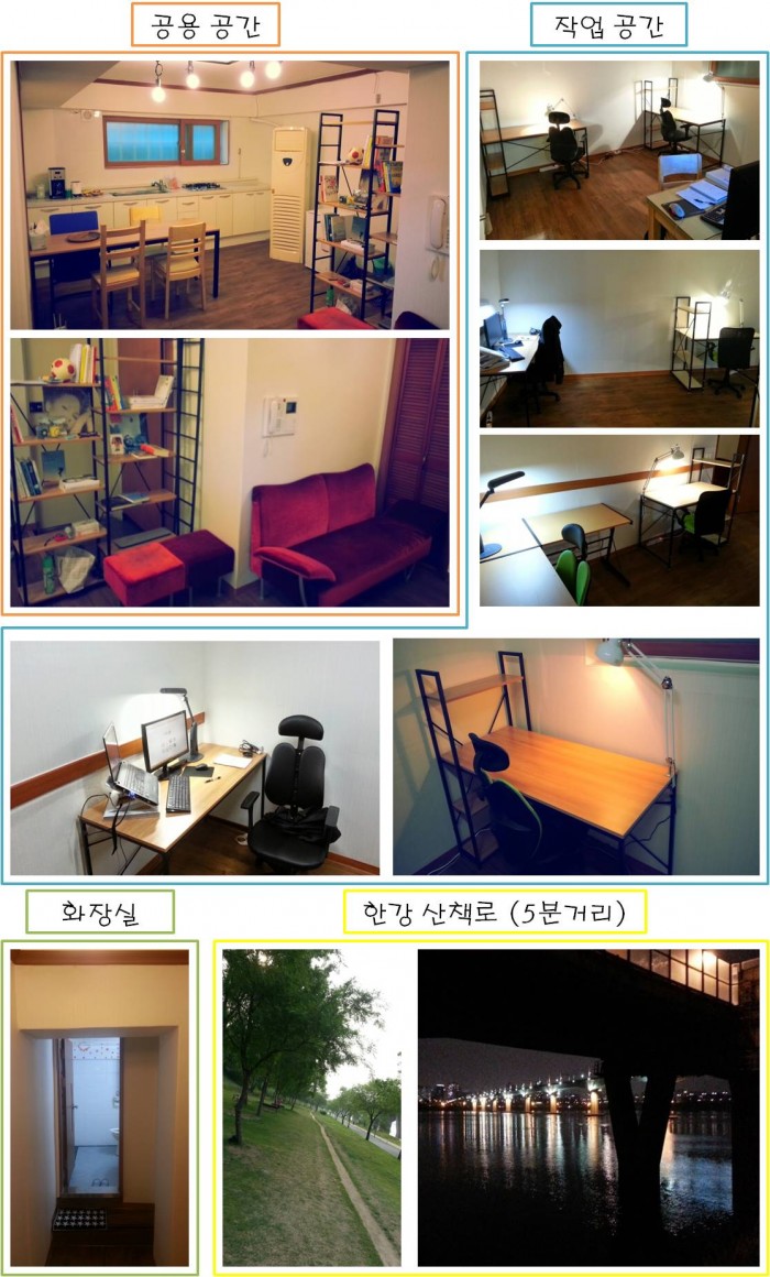 주변 조용해서 집중하기 좋고 한강 산책코스도 5분이면 갈 수 있어요. 함께해요^^