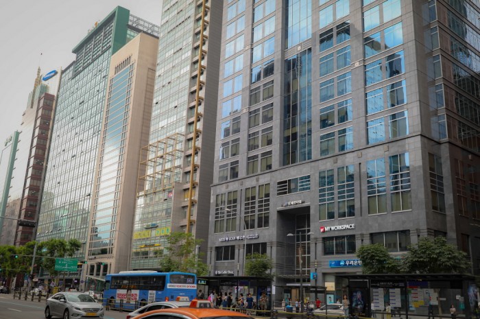 - 마이워크스페이스 1호점 (구 옥셔노리오피스) 강남구 테헤란로4길 6 강남역센트럴 푸르지오시티 지하 2층, 지상 3층