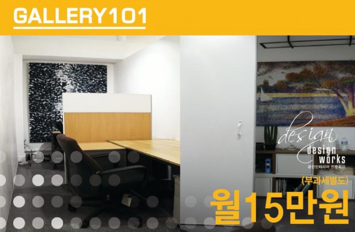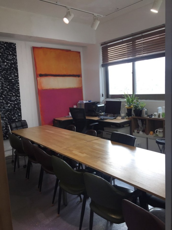 2층에 위치한 사무실이며 기존에 칸막이가 되어있어 분리공간으로 한분이 쓰고있습니다.