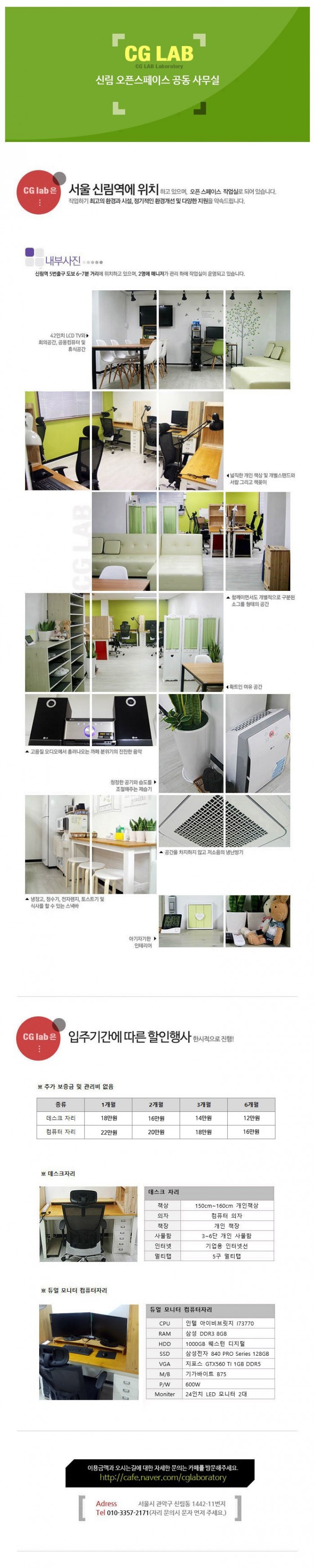 [신림역] 공동 사무실/쉐어 오피스/작업실 책상 자리 & 컴퓨터자리 (월12만원~)