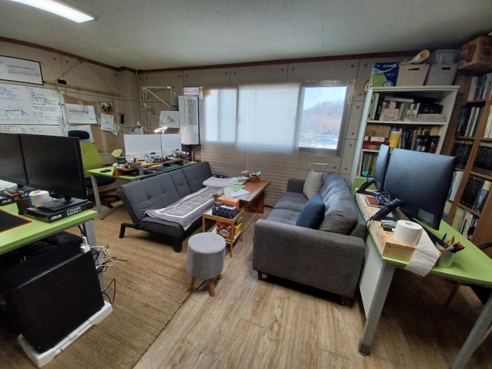 독립된 공간 밖에는 IT 스타트업을 하는 청년 3명과