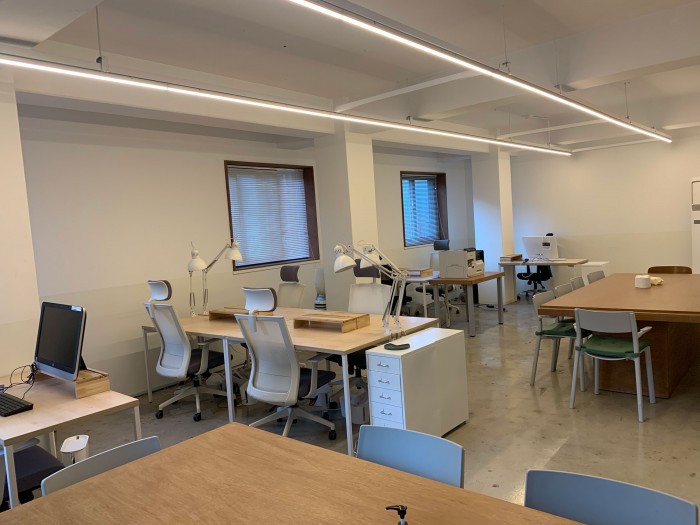 2. 1인 자리 공유 : 25평 크기의 공간 10개 좌석, 큰 창 6개 (원하는대로 좌석 배치 가능 – 현재 공유를 시작하는 시점이라 먼저 들어오시는 분이 원하는 자리와 배치를 결정하셔도 돼요) :