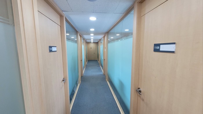 백상빌딩 별관 11층에 위치한 소호사무실이며 개별방 10개 정도의 공유오피스 입니다..
