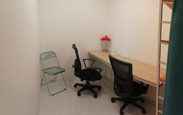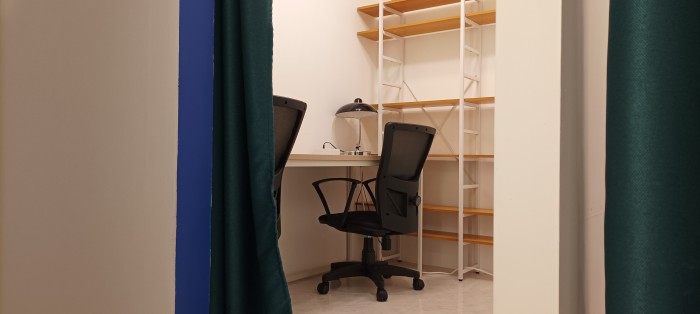 공간은 가벽과 커튼으로 분리되어 있어 개방감이 있으며 냉난방및 제습 가능한 시스템이 작동하고 있습니다.