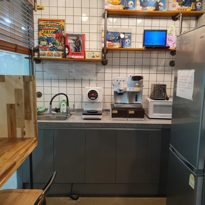 -.카페테리아 무료 커피, 냉장고, 라면조리기, 토스트기, 전자레인지 등 이용가능.